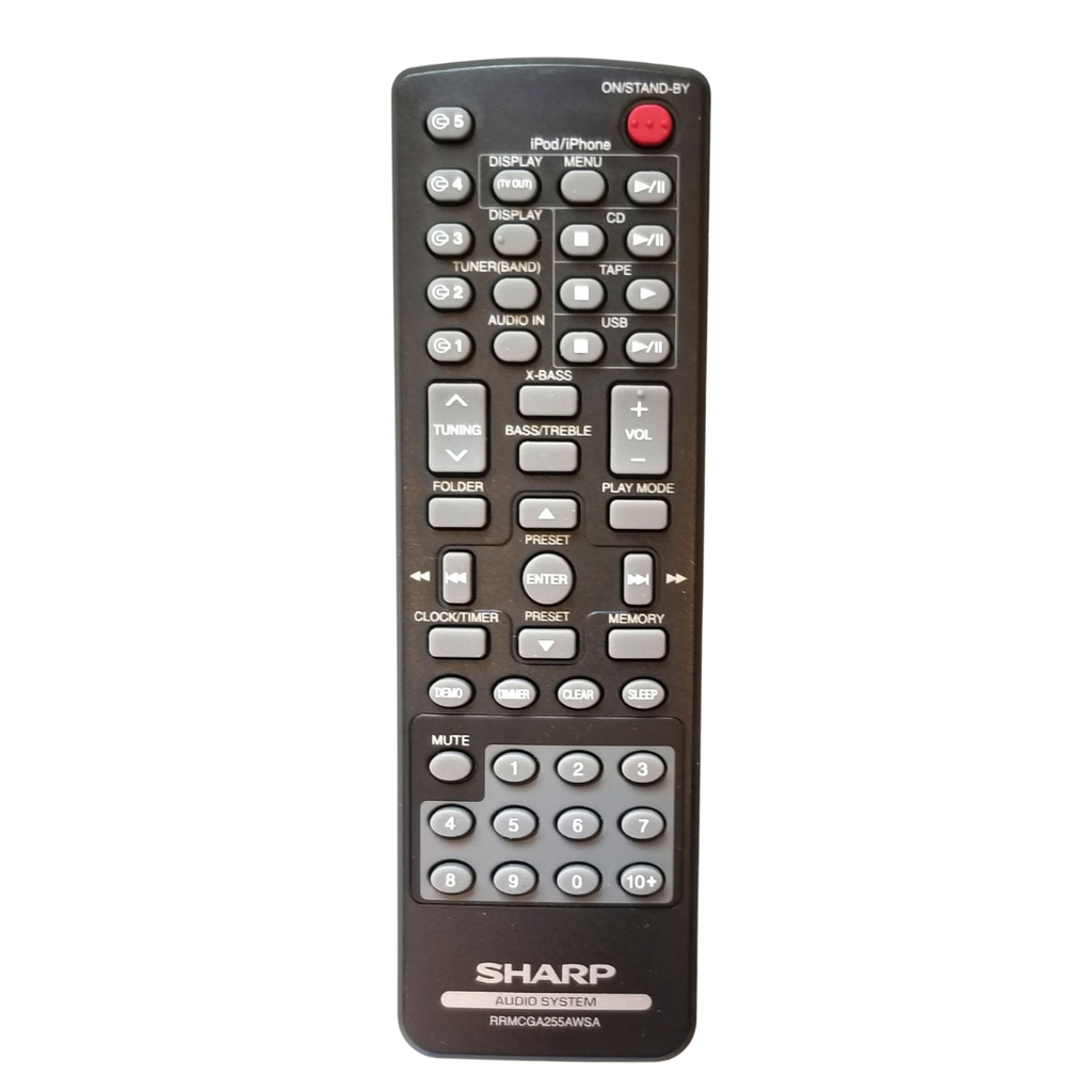 This remote originally shipped with and is compatible with Sharp audio systems: CDDH950P, CDDHS1050P